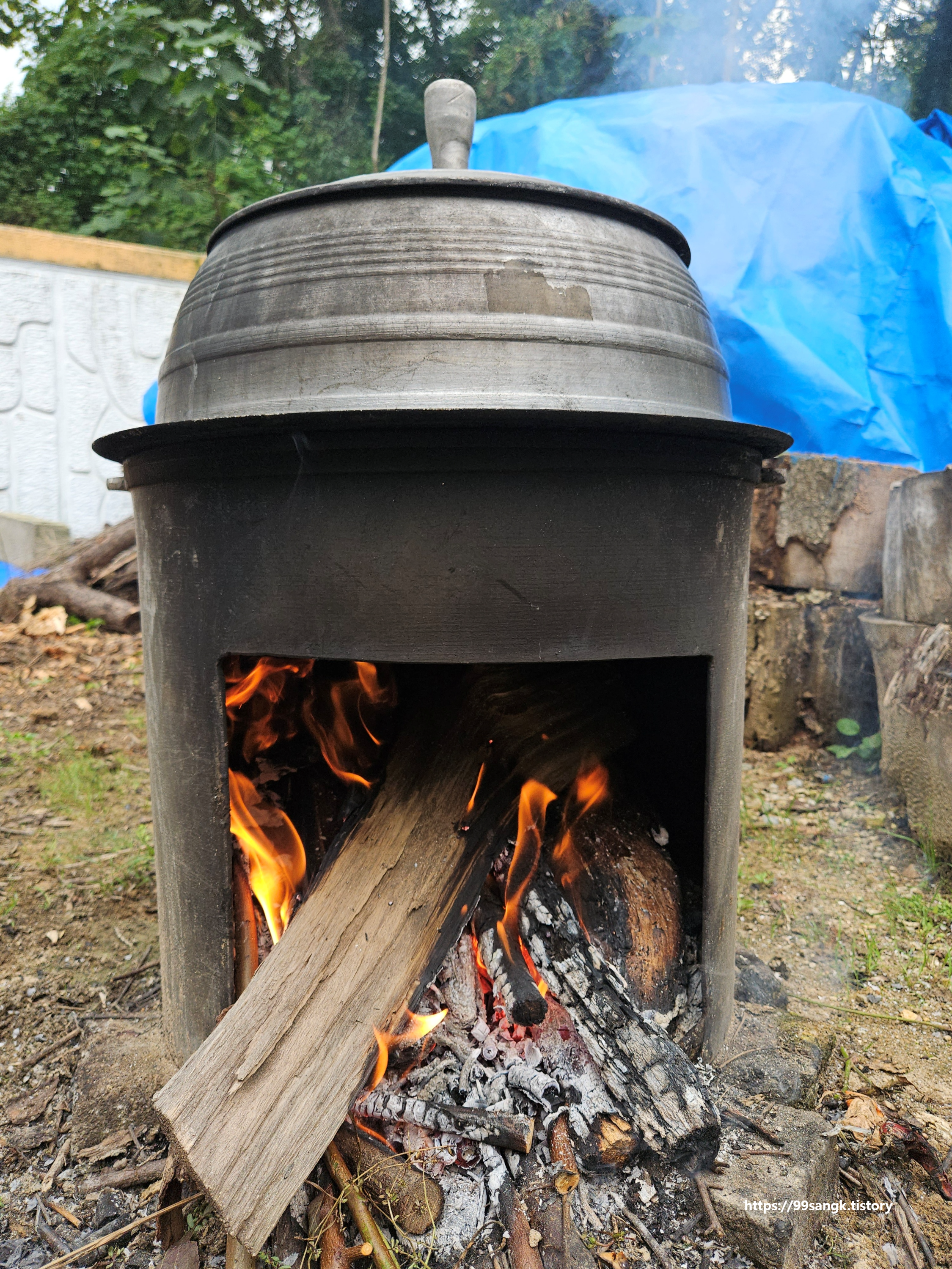 세번 씻은 알밤을 펄펄 끓는 가마솥에 7분동안 삶습니다.
