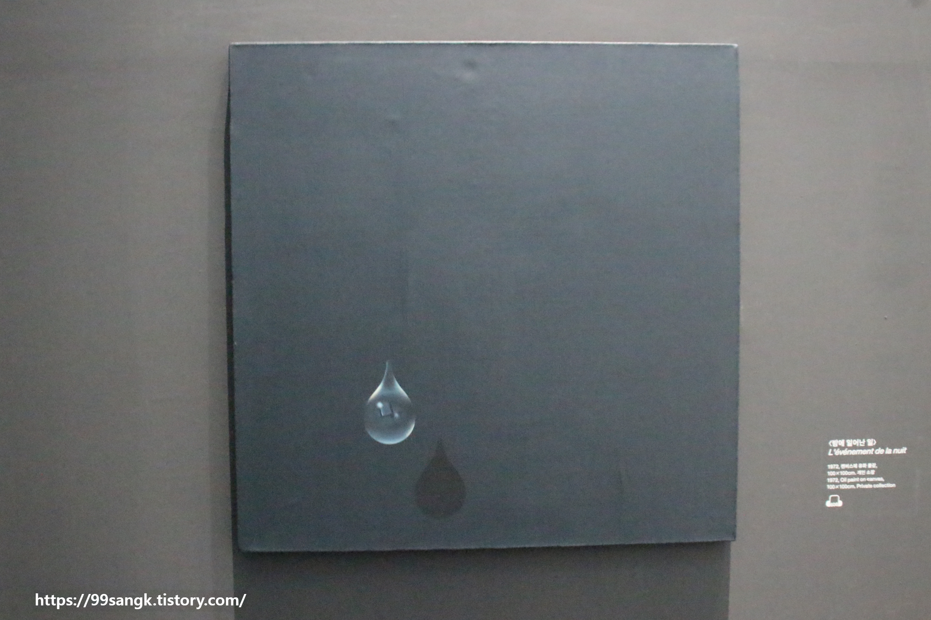 <밤에 일어난 일> _ 김창열(金昌烈, 1929~2021, 평안남도 맹산군), 1972, 캔버스에 유화 물감, 100×100cm, 개인 소장