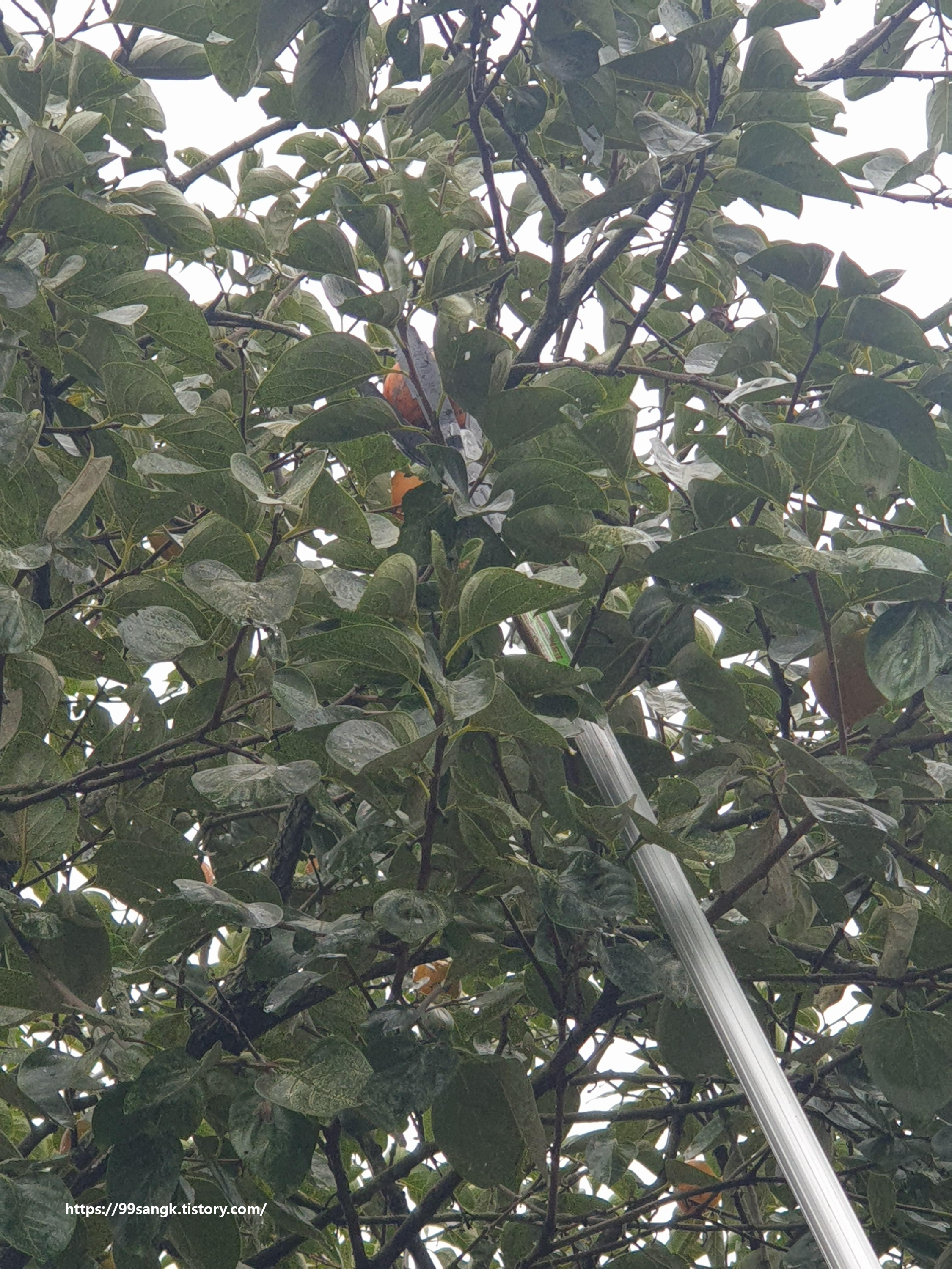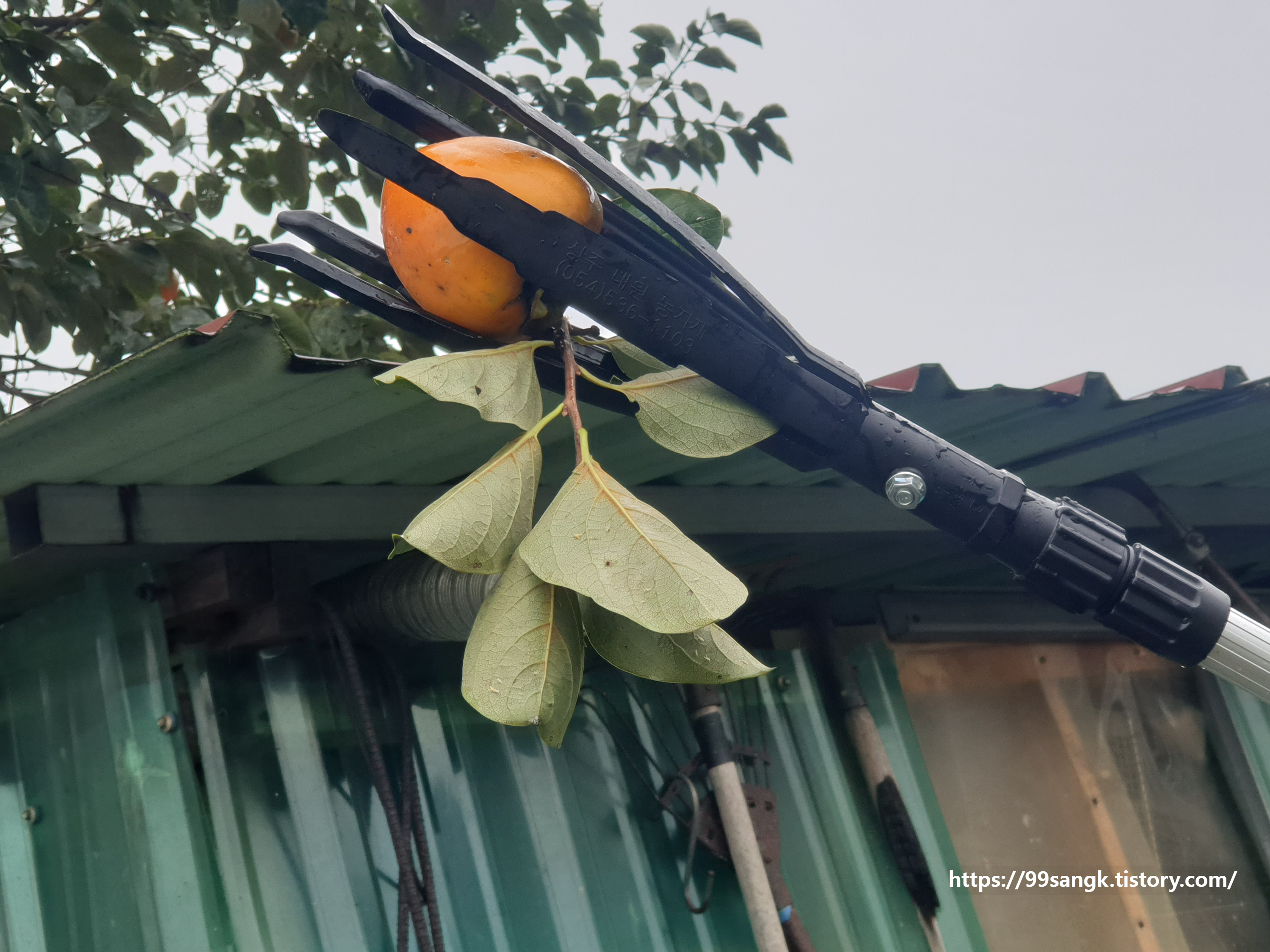 대봉감을 수확할 때는 이 연장(최대 길이 8m)이 필수입니다. 이 연장으로 따면 감이 전혀 손상이 없이 깨끗이 딸 수 있습니다.