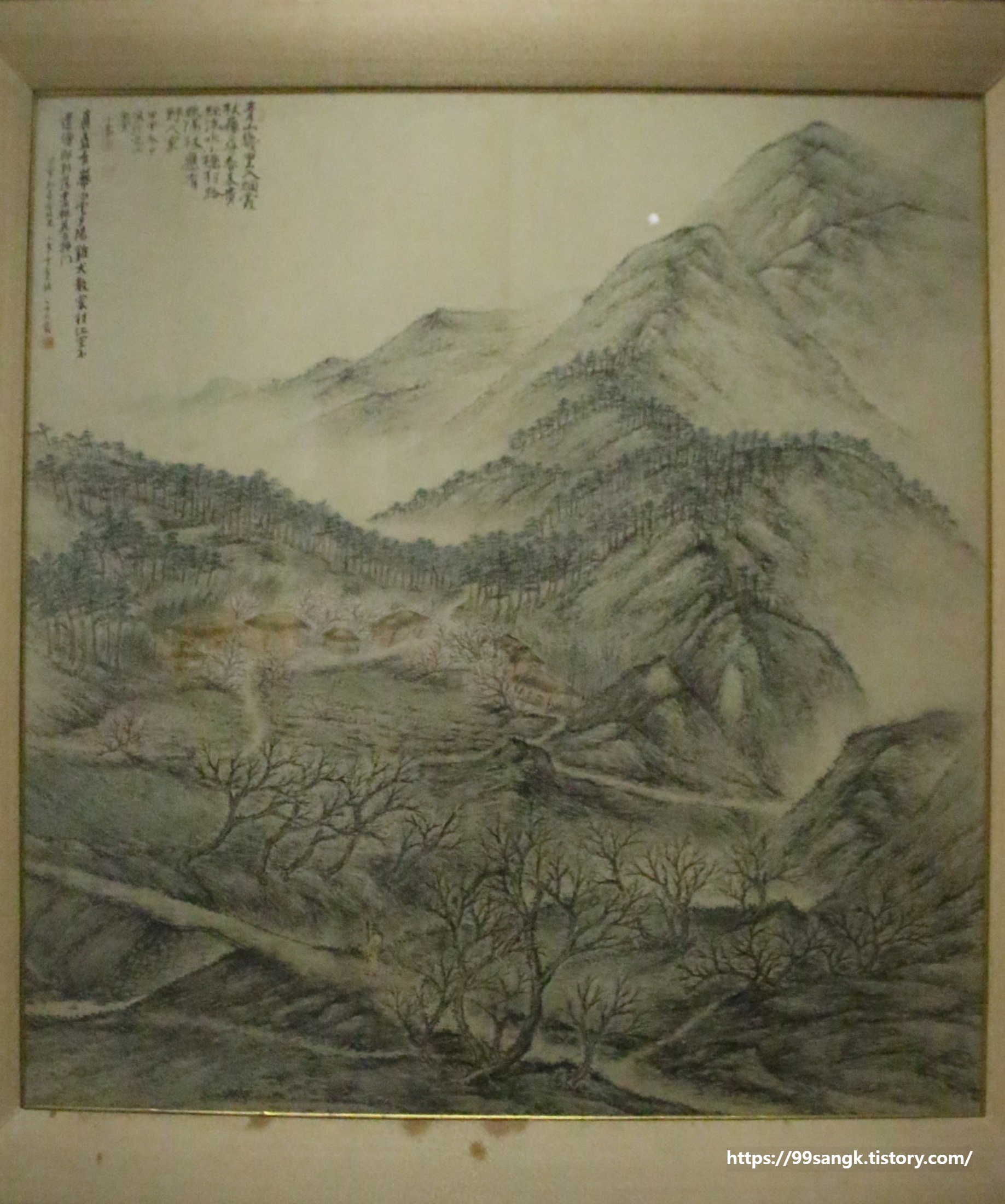 작품 왼쪽 상단에 적힌 1944년 제발문은 명나라 문인 임환(1519~1561)의 시이며, 1974년 추가된 제발문은 명나라 서예가 문장명(1470~1559)의 시로, 이상향 도원경(桃源境)을 연상케 하는 실경 기반의 이상적 풍경을 담고 있음을 알 수 있다.