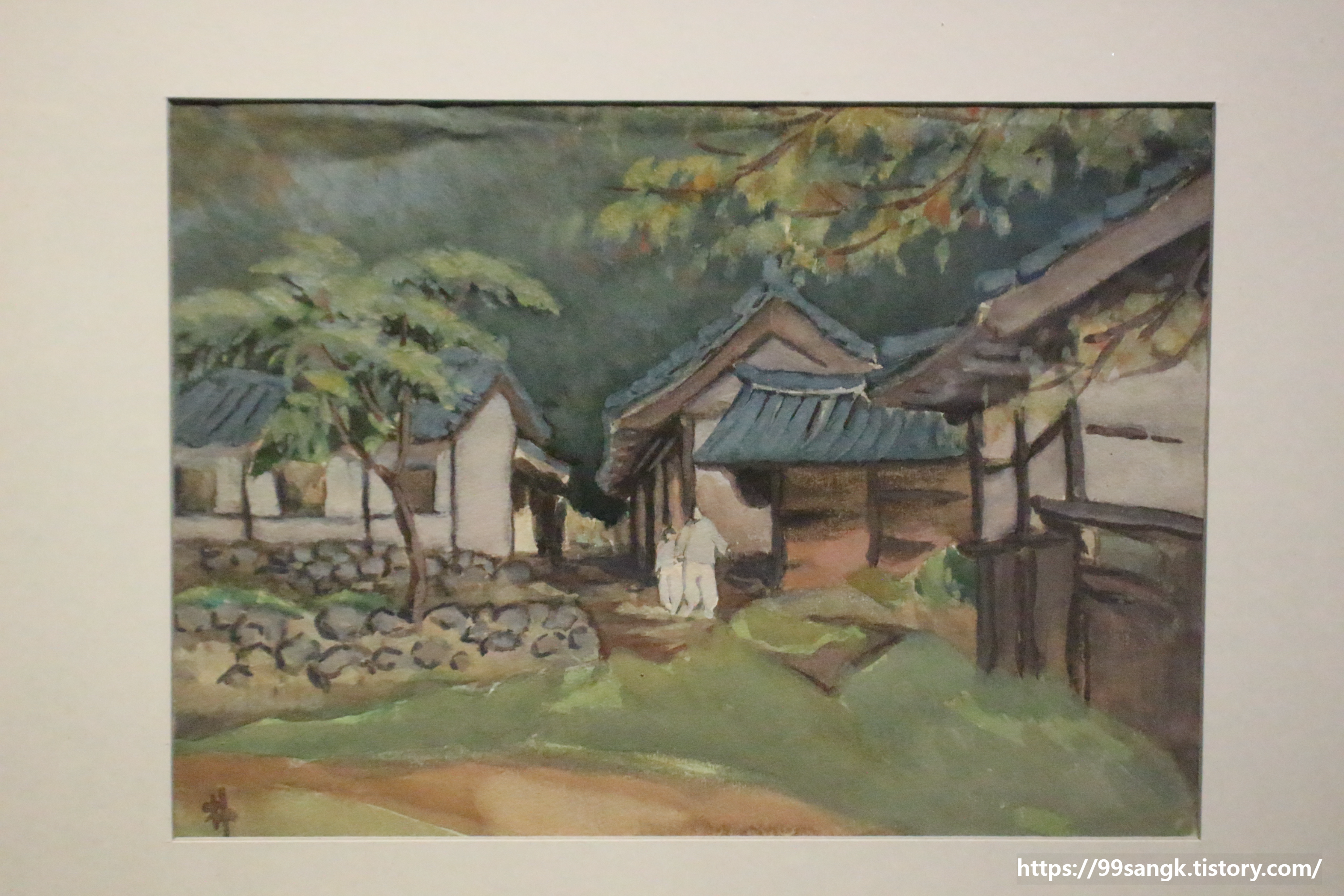 <고향풍경> _ 우현(又玄) 박명조(朴命祚, 1906~1969, 대구 출신), 연도 미상, 종이에 수채 물감, 26.5×37cm, 유족 소장