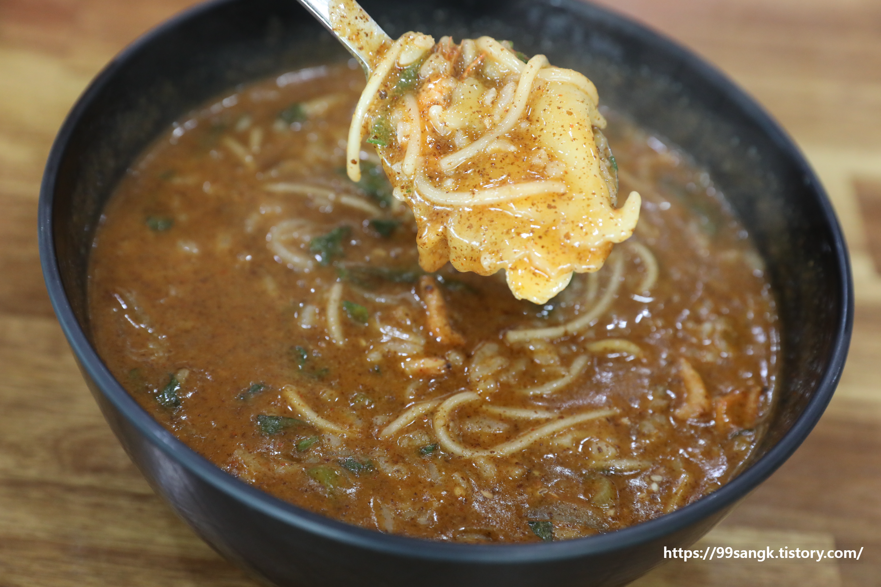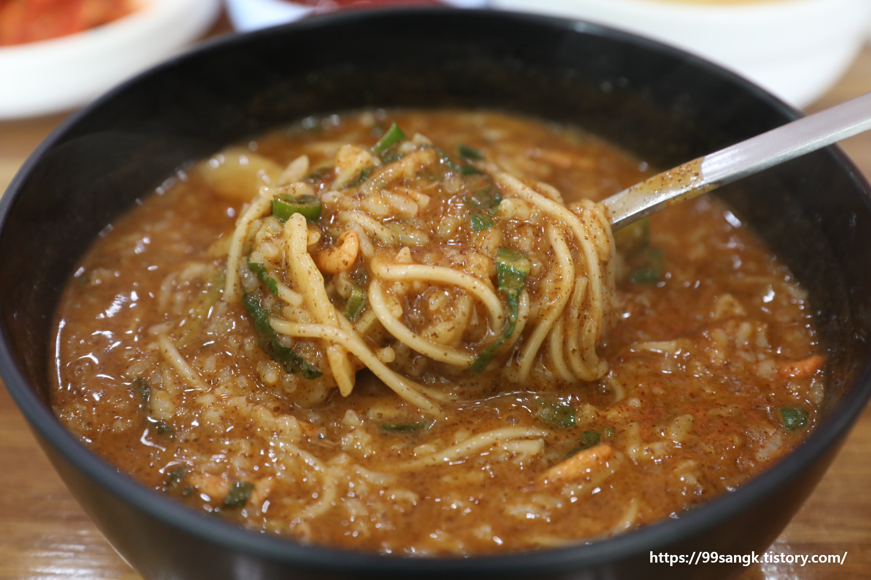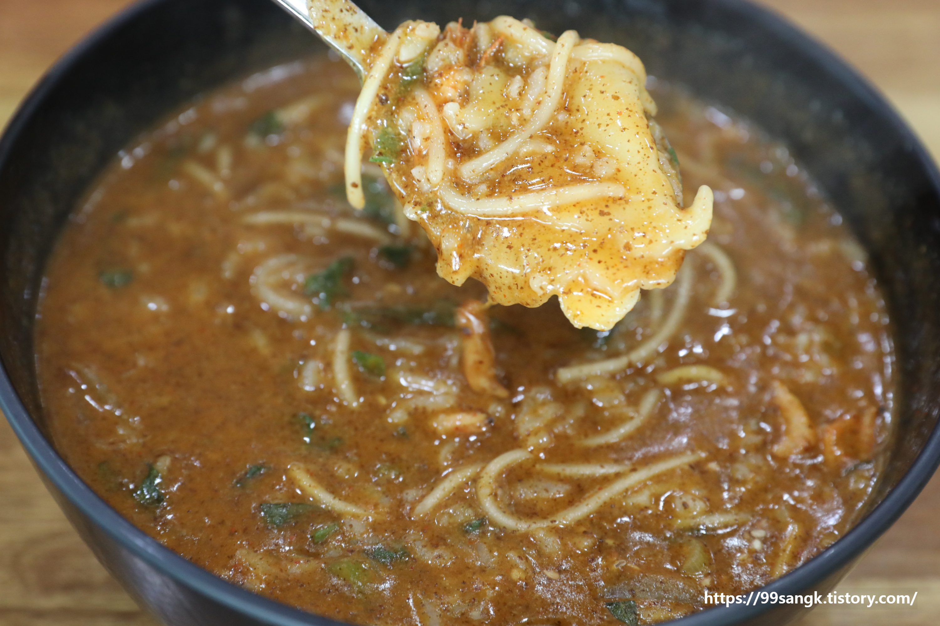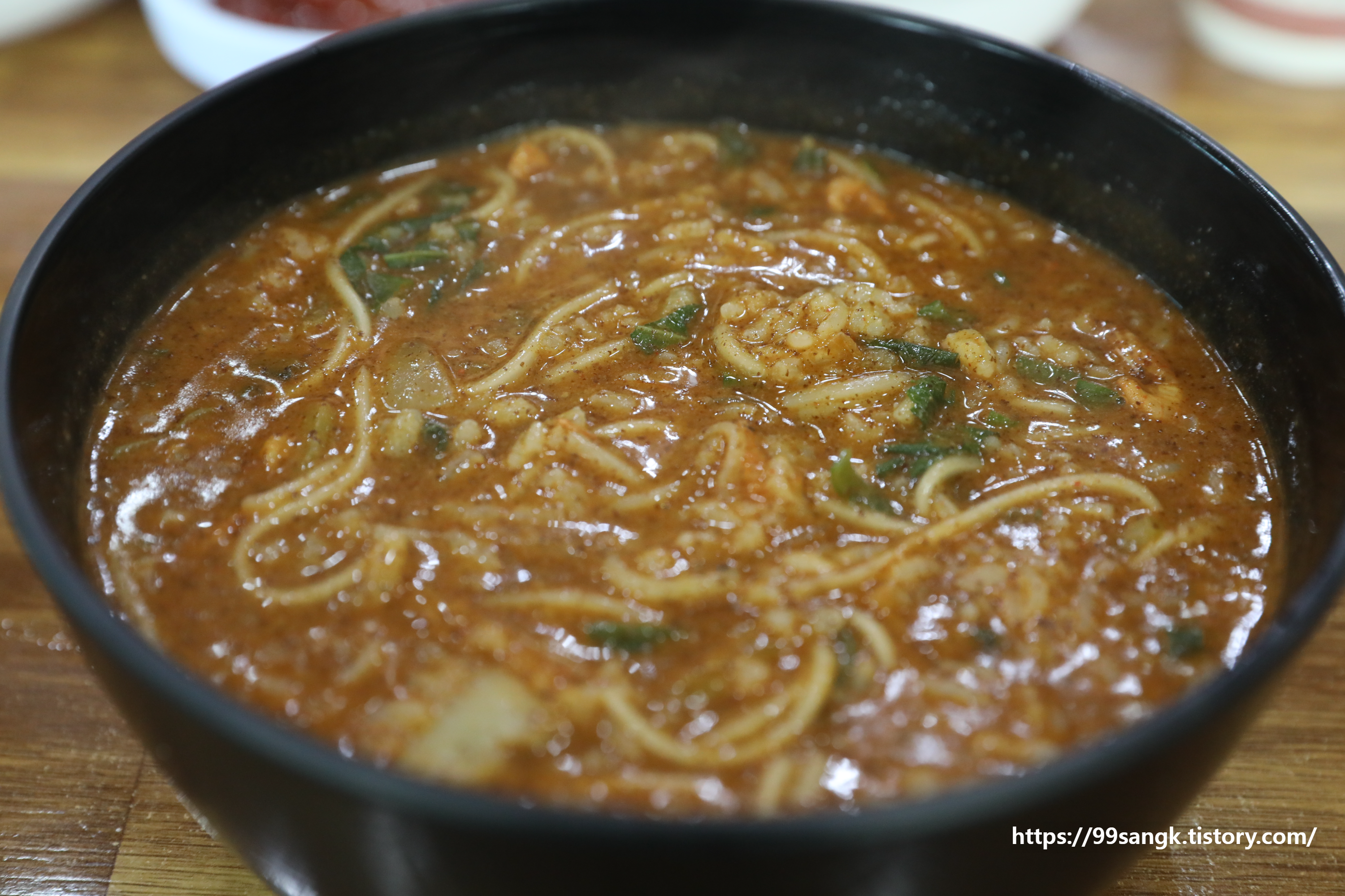 들깨가루를 넣어 먹으면 맛이 배가 됩니다.