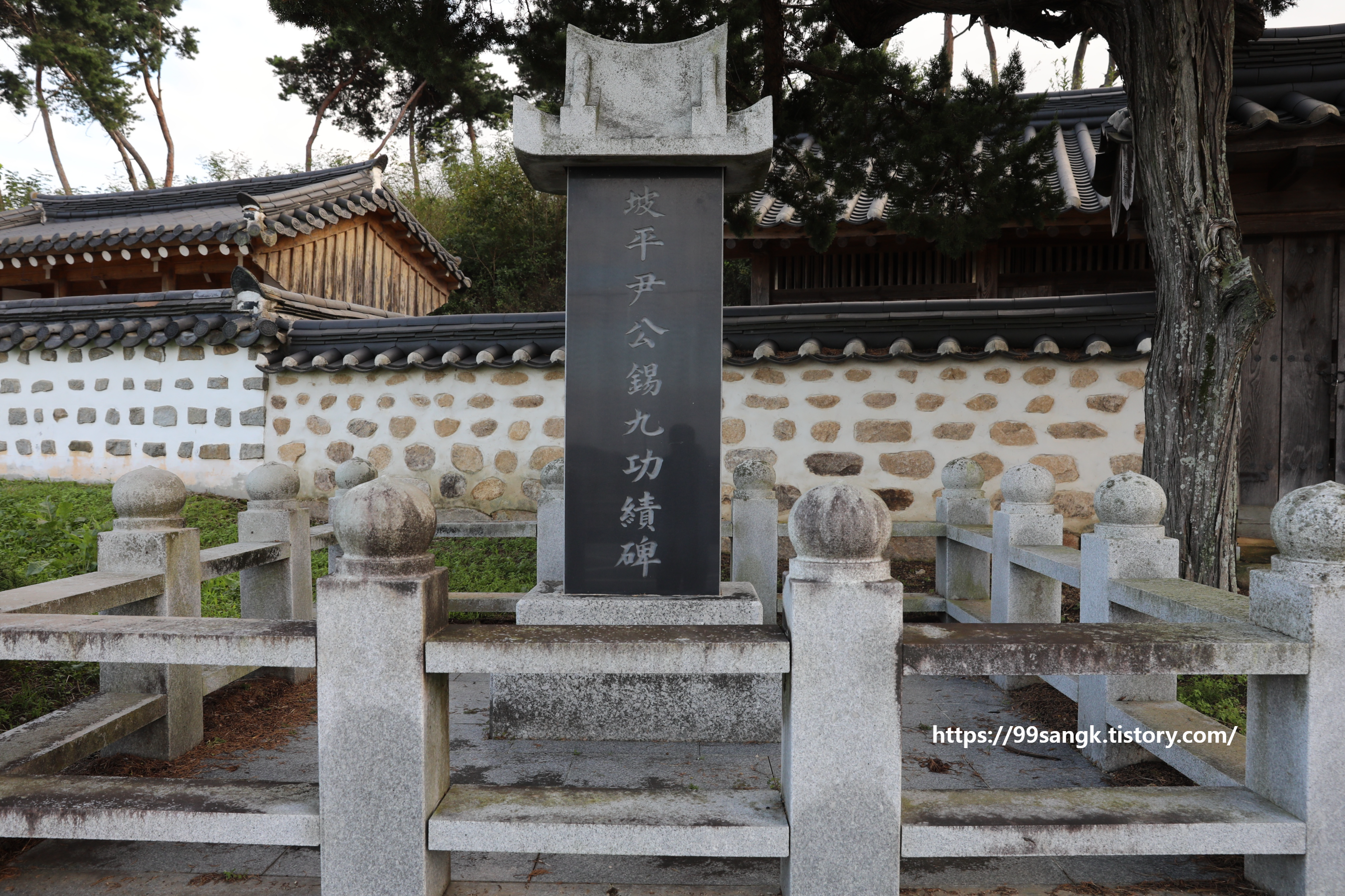 영당 앞에 세운 鳳溪坡平尹先生追慕碑(봉계파평윤선생추모비)
