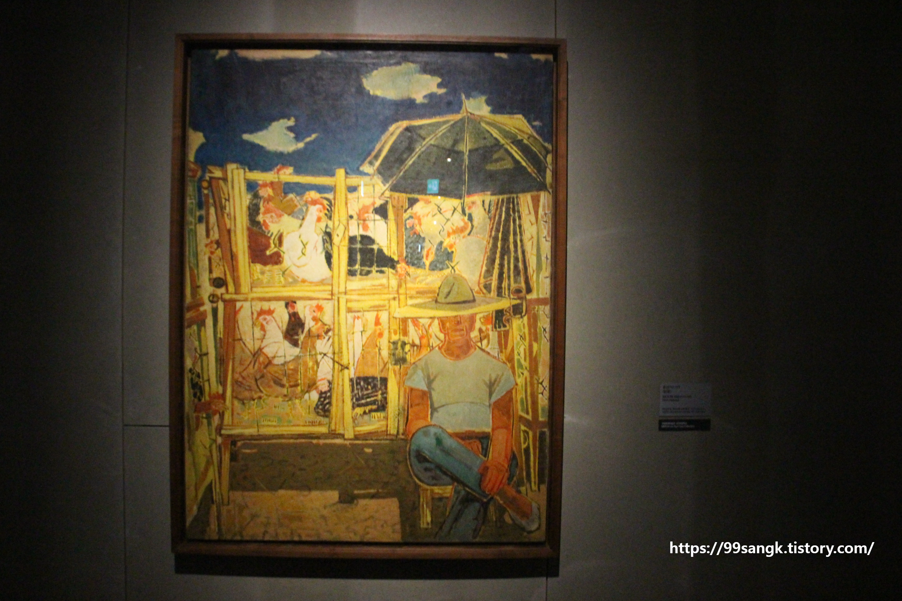<닭장> _ 문신(文信, 1922~1995, 일본 규슈), 1950년대, 캔버스에 유화 물감, 141×103.5cm, 국립현대미술관 이건희컬렉션