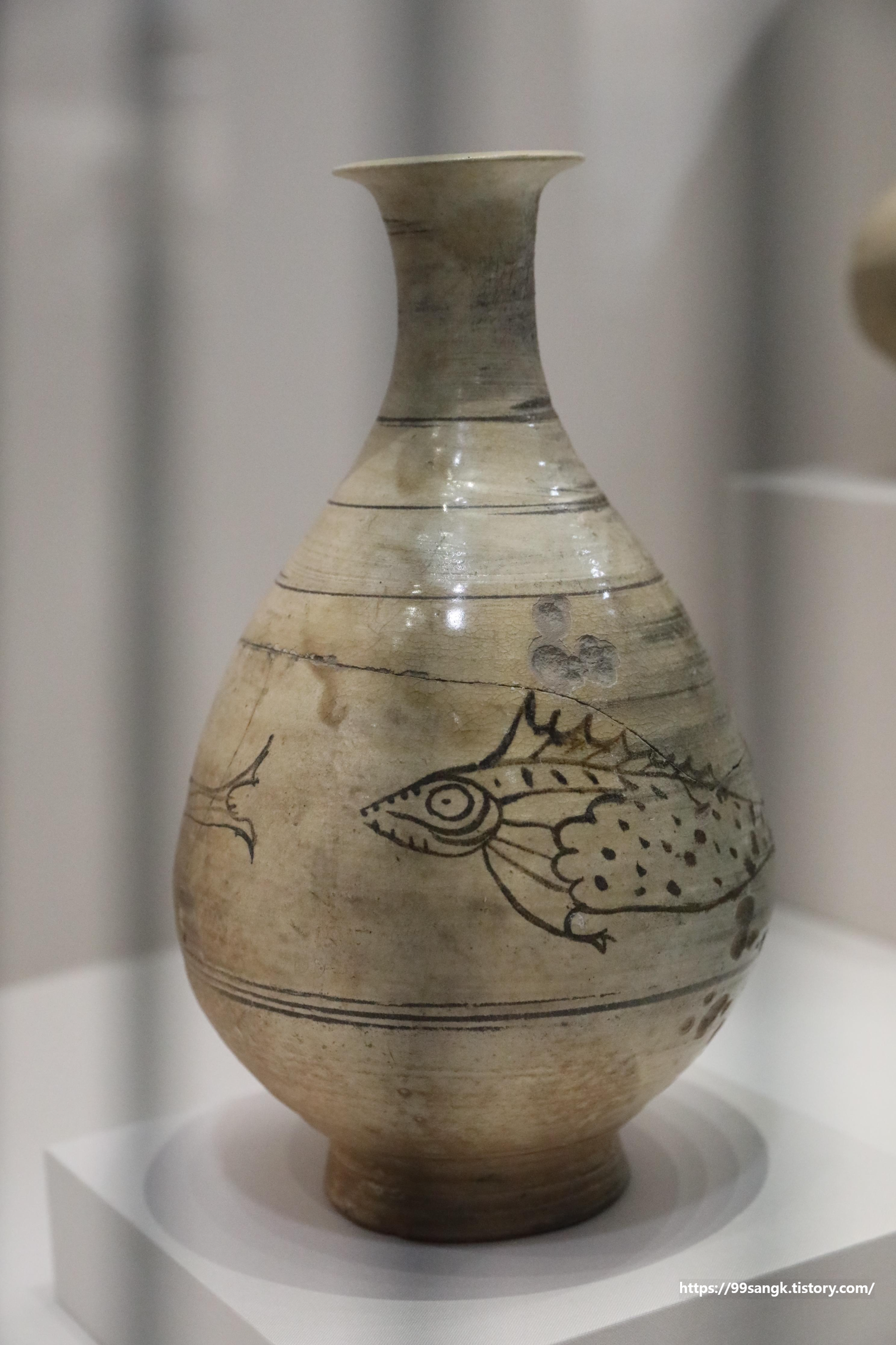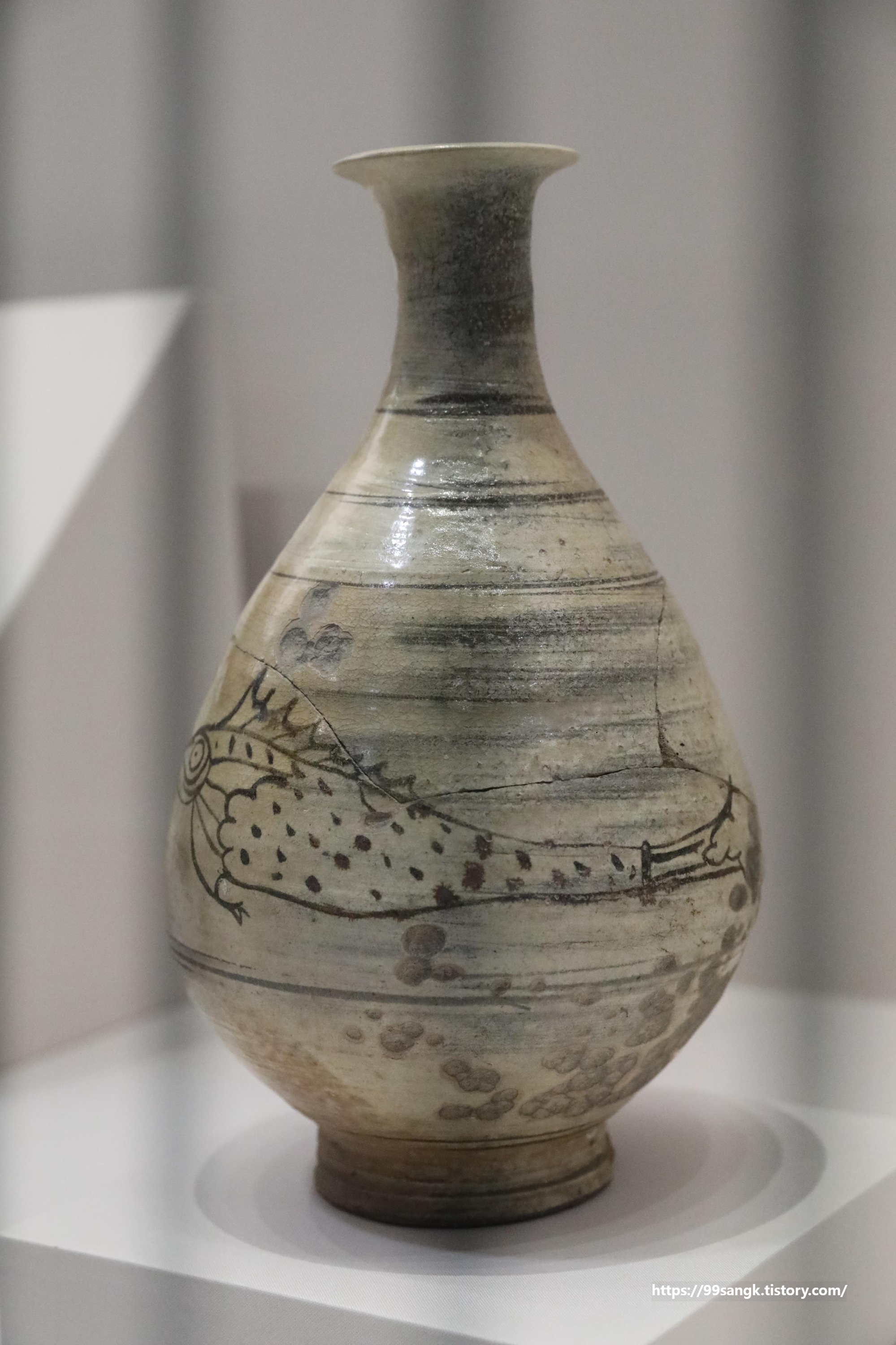<분청사기 철화 어문병(粉靑沙器 鐵畵 魚文甁)> _ 조선, 부여 금사리 출토, 1956년 기증, 국립부여박물관 소장
