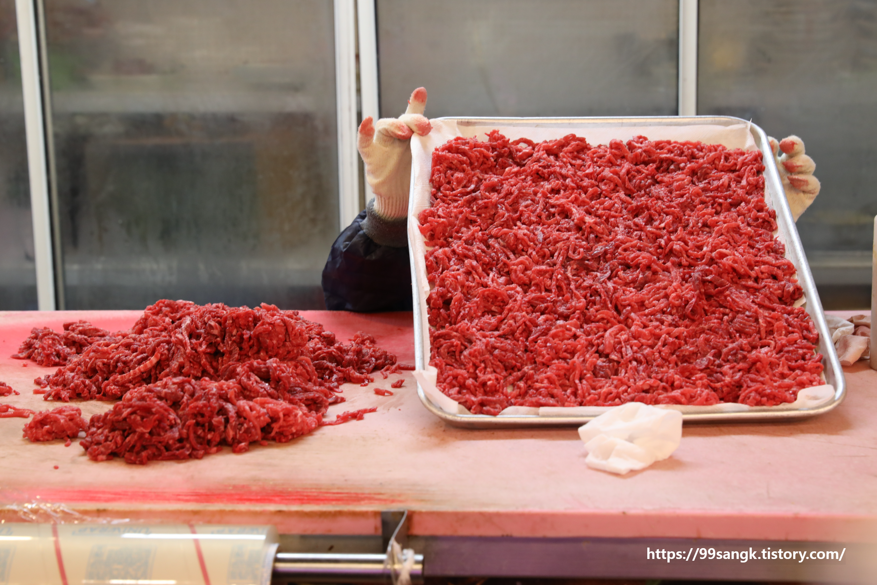 골드한우식당 사장님이 육회를 손질하고 있습니다.